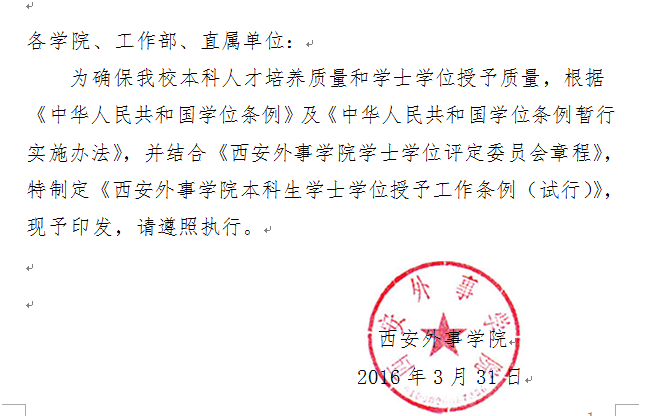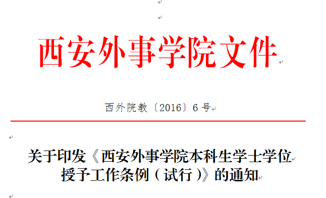 关于印发《西安外事学院本科生学士学位授予工作条例(试行)》的通知