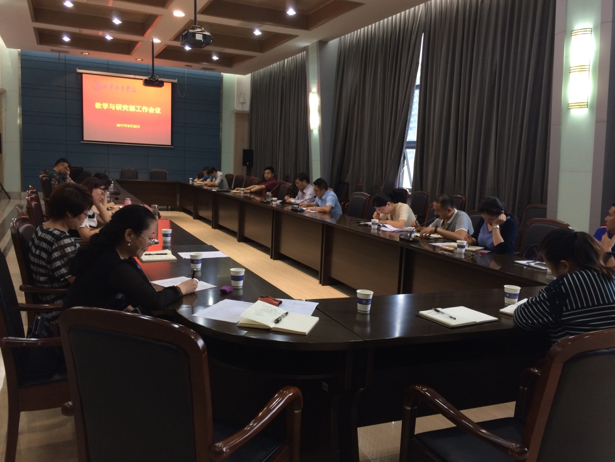 9月22日下午,教学与研究部在西楼五楼会议室召开新学年工作会议。教学管理办公室、科研管理办公室、教师发展中心、教学督导室、教学质量评估中心全体人员及招生办公室、信息化建设办公室、图书馆、体育教育中心、现代教育中心负责人参加了会议。会议由罗相杰部长主持。